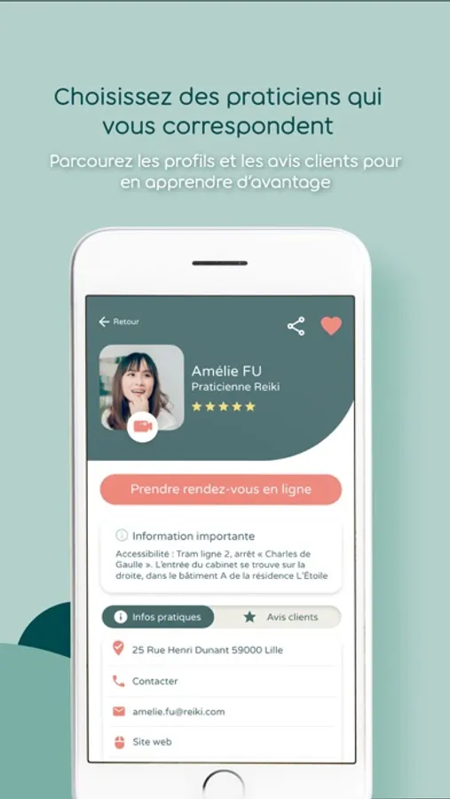 Enfin vous pourrez même partager la fiche d'un praticien avec un proche en toute simplicité !
