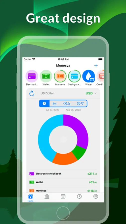 Monesya is the perfect tool for maintaining a comprehensive control over your finances. With the ability to record both your bank accounts and cash income, you can have a complete overview of your finances. Additionally, it allows you to set goals and customize the color of each account for easy identification.