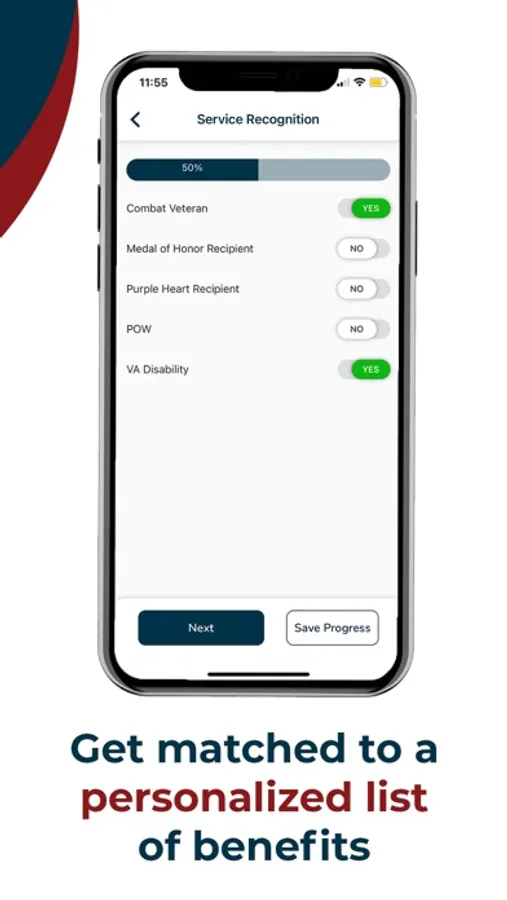 • Get matched to benefits you qualify for in a matter of minutes based on the service member or veteran’s unique time in service.