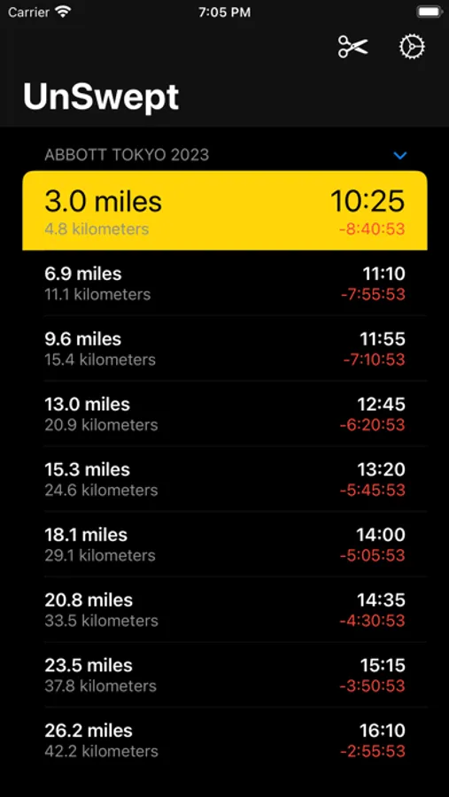 A simple standalone iPhone or Apple Watch app for Word Major Marathon runners to let you know how much time you have before the next cutoff checkpoint (where you will be swept up by the bus and unable to finish the race).