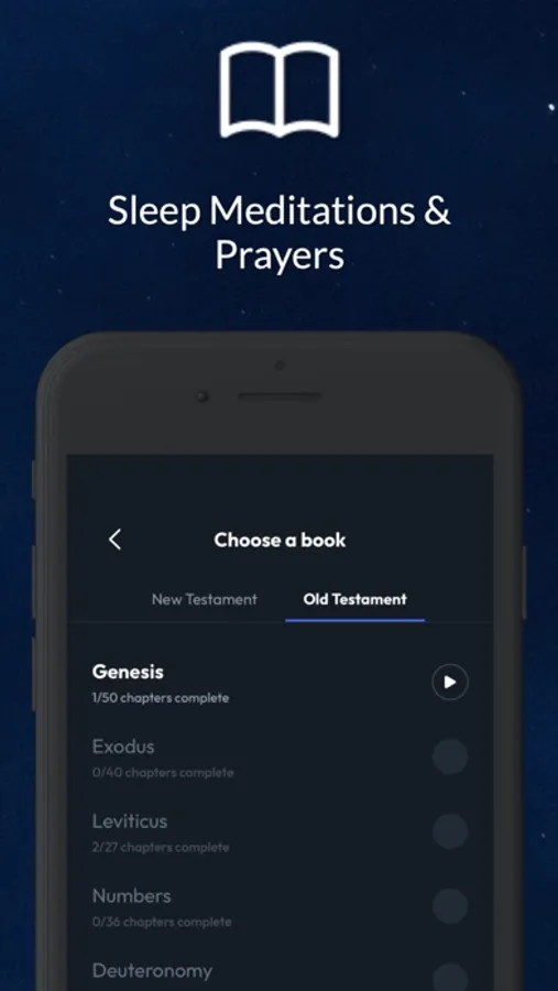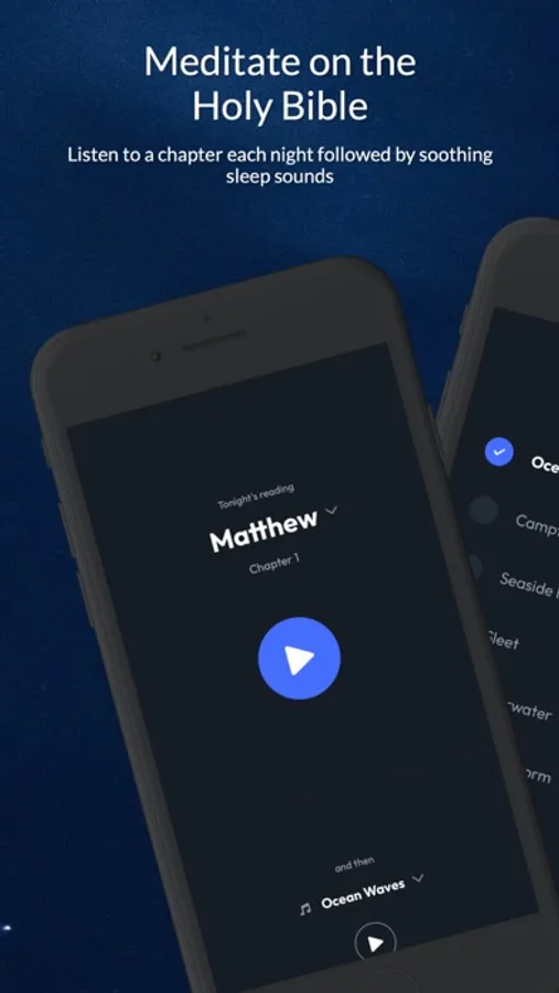 Listen to a chapter of the Holy Bible each night followed by a prayerful sleep meditation and soothing sleep sounds.