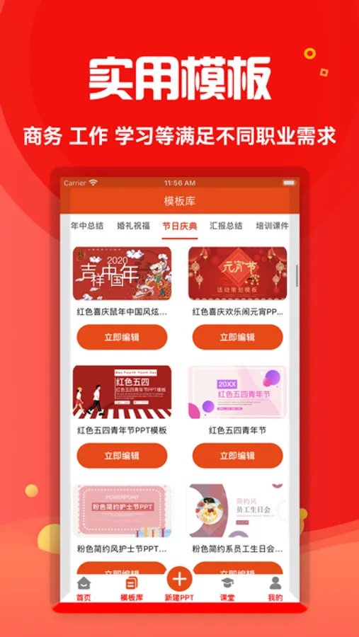 一款多功能的PPT制作编辑软件,有了它,您可以在手机上轻松进行幻灯片制作以及编辑和导出,随时随地都能创建、演示、编辑、分享PPT等!