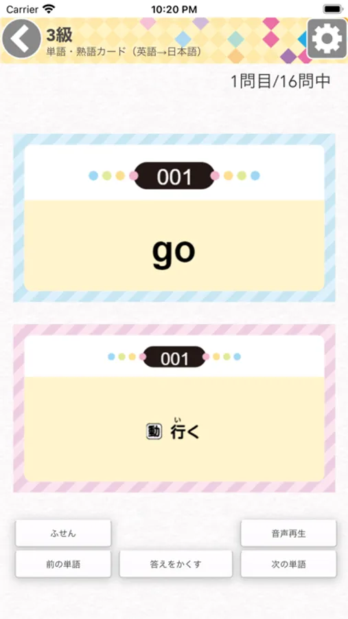 英検によく出る単語・熟語を英語→日本語,日本語→英語の2通りで暗記できます。音声つき。
