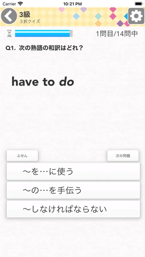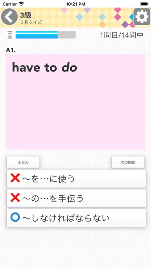 単語や熟語の意味をクイズ形式でテンポよく復習できます。全問正解すると,パズルが完成します。