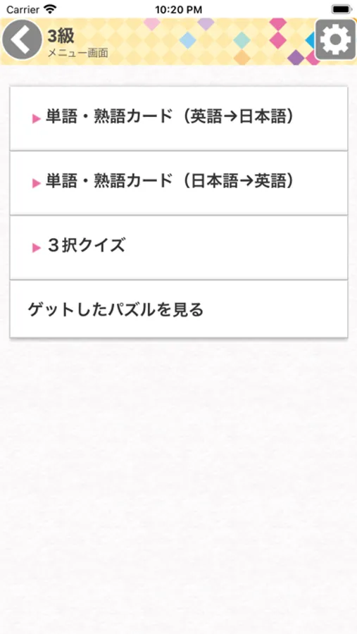 ・「ピースゲット」…1つの単元を全問正解するとパズルのピースを手に入れることができます。