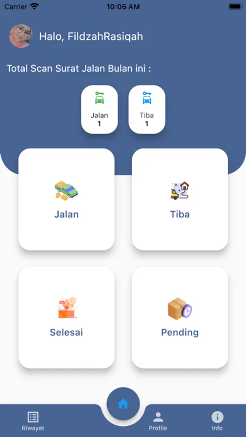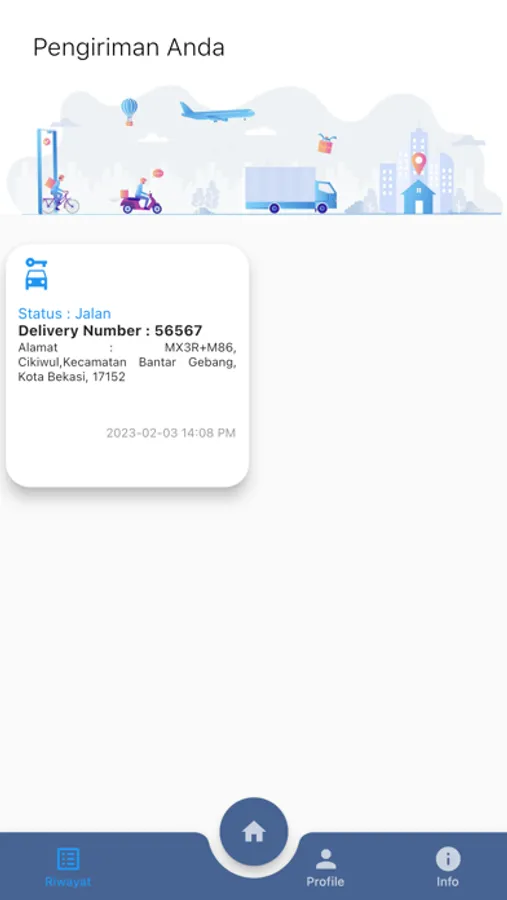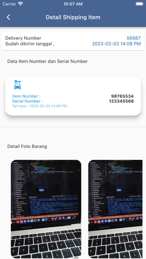 History pengiriman barang dengan menggunakan geolocation dan barcode scanner versi ios