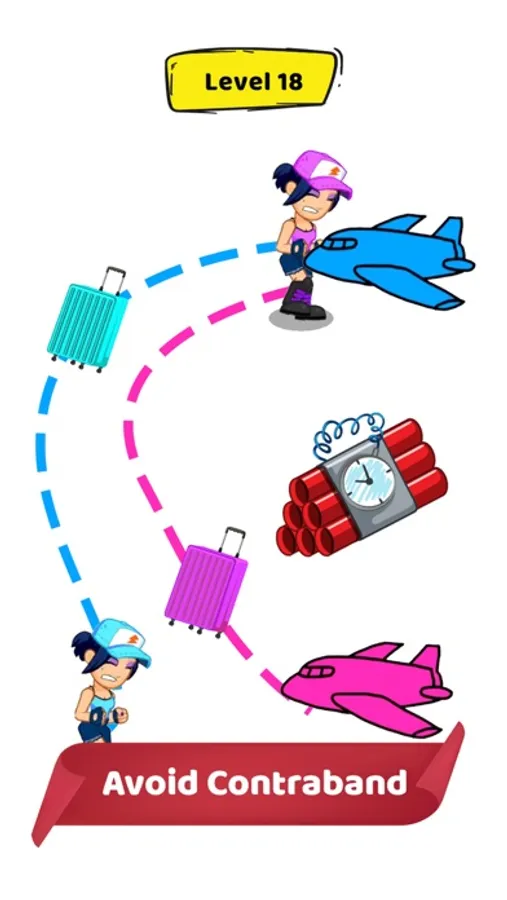 Your quest is to find the way to reach plane. Draw a line to connect the girl and the plane .