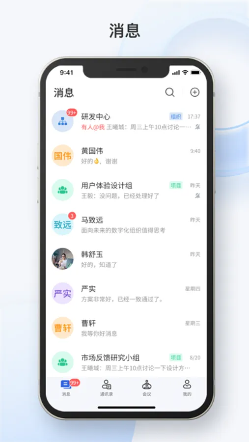 数字化协同办公软件,支持与iPhone、Mac等多端用户进行实时沟通交流。提供文字、语音、音视频和会议等多种沟通方式