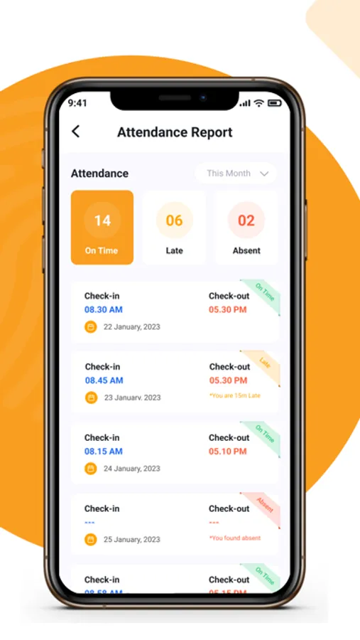 Automatic attendance machines, server connections, and geofencing attendance Utilize timely management information for effective decision-making and administration of attendance-based incentives (overtime, tardiness, and leave).