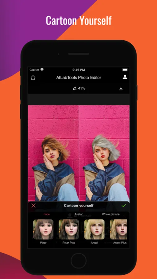 PhotoPaint- Convert images into cartoon, pencil, coloured pencil, or gothic oil painting, coloured sugar cube oil painting, shouting oil painting, Kanagawa Surf Lane oil painting, whimsical oil painting, lavender oil painting, etc. in a total of 9 styles by using AI algorithms.