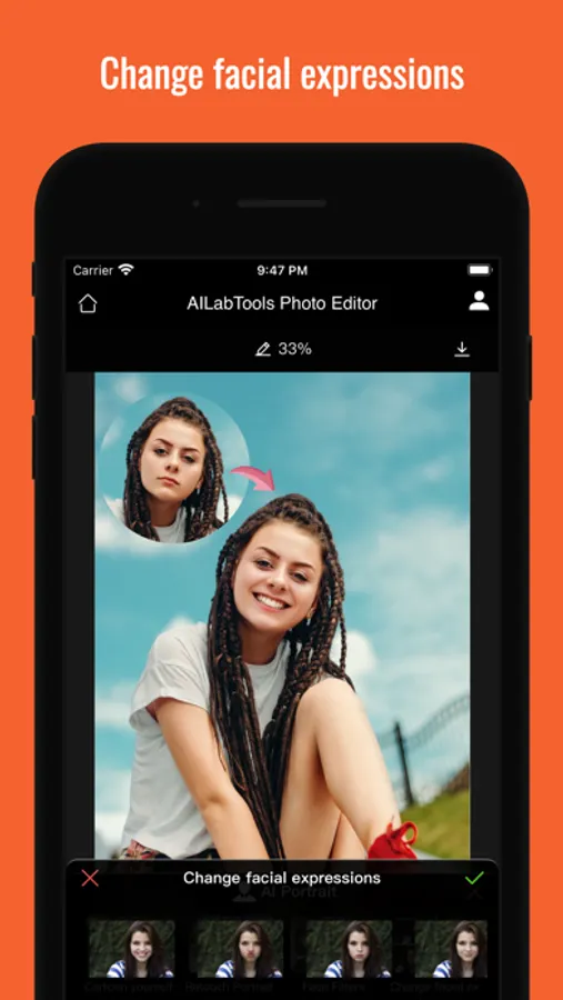 Change facial expressions - Use advanced image processing technology to edit the expressions of human faces in images. Supports application scenarios such as real-time effects and photo editing.