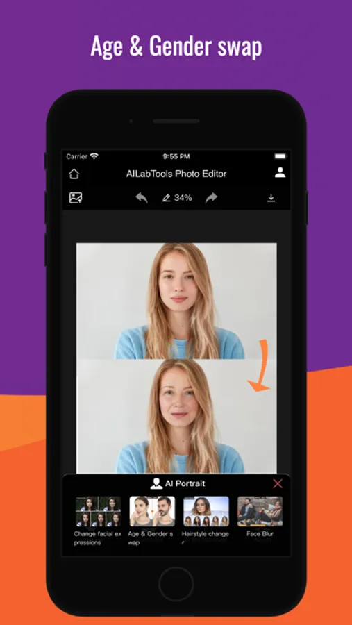 Age & Gender swap - Through AI algorithms, face attribute features can be edited to achieve special effects such as gender swapping and age change, generating a variety of special effects photos for users, which can be applied to fun social networking.