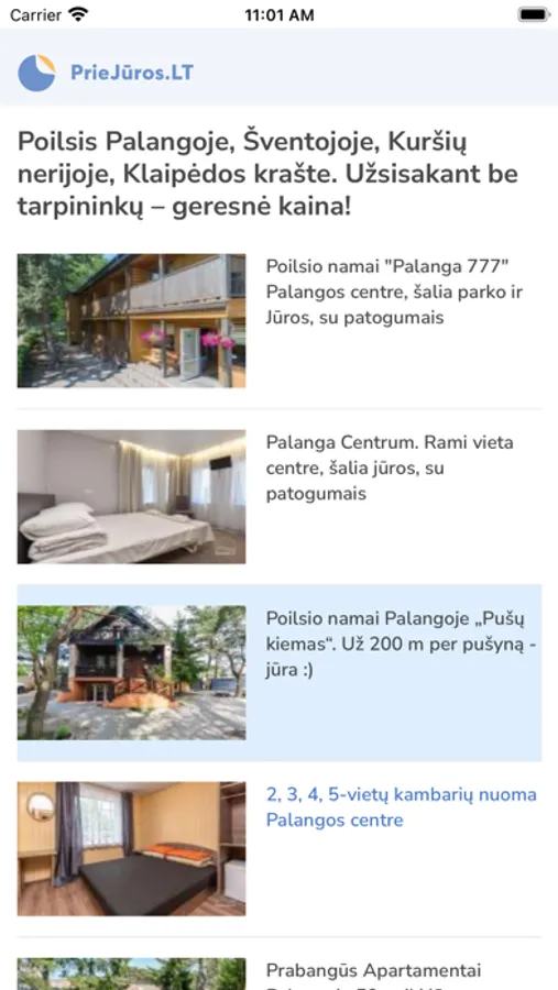 Portale yra daugiau nei 3000 skirtingų poilsio, apgyvendinimo pasiūlymų Lietuvos pajūrio kurortuose ir miesteliuose: Palangoje, Šventojoje, Kuršių nerijoje: Nidoje, Juodkrantėje, Pervalkoje, Preiloje, Smiltynėje, Klaipėdoje, Klaipėdos rajono miesteliuose: Melnragėje, Giruliuose, Karklėje, pamario regione: Svencelėje, Drevernoje, Ventėje, Mingėje, Rusnėje.