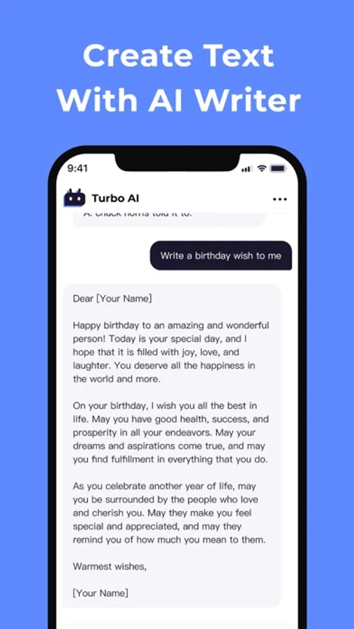 With Turbo AI, you can get personalized help with any writing project, from essays and speeches to lyrics and poetry.