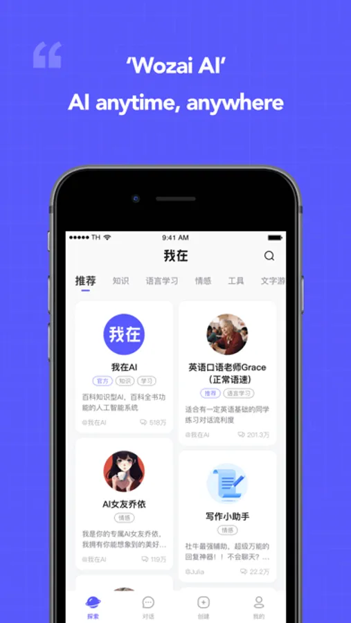 "Wozai" is an innovative platform that integrates various AI chatbots to provide comprehensive support for users' needs in writing, learning, creativity, and entertainment. We gather cutting-edge artificial intelligence technology to offer personalized and intelligent services. Here, you can easily get writing inspiration, efficiently learn new knowledge, expand creative thinking, and have interesting conversations with chatbots.