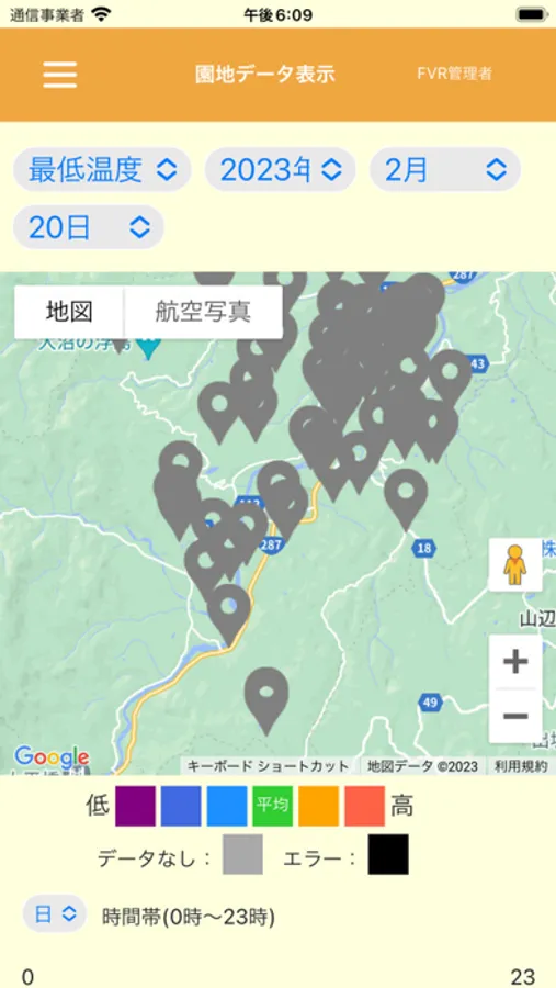 ・ 温度ロガーで計測した園地温度を地図上で比較/確認できます。