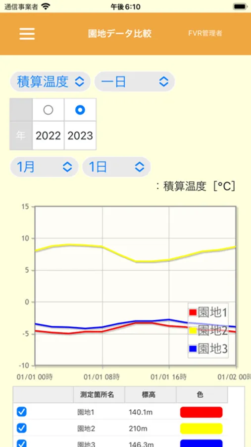 ・ 温度ロガーで計測した園地温度をグラフで比較/確認できます。
