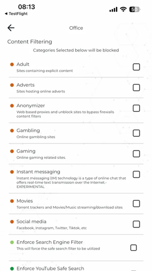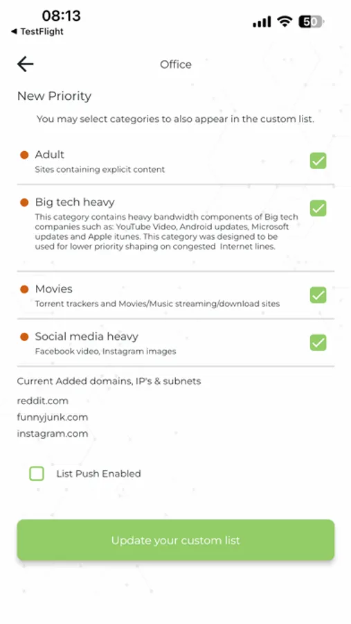 Access and Configure the Content Filter, Intrusion Prevention, Saturation Management (content-based traffic shaping), and Reporting modules for any existing Enforcer Profile Linked to your App Account.Administration of LucidView MikroTik Enforcer profiles.