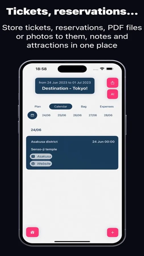 Everything you need on your trip is at hand. Forget about the chaos and inconvenience of organizing trips, because we offer you intuitive tools and functions that will save you time and make planning enjoyable and efficient.