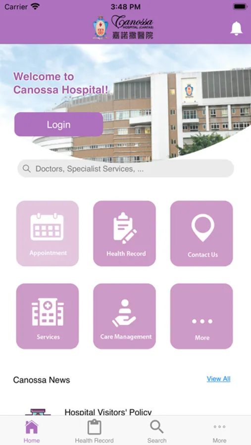 The Canossa Hospital (Caritas) mobile application is an integrated information platform to facilitate patients to manage healthcare more effectively.