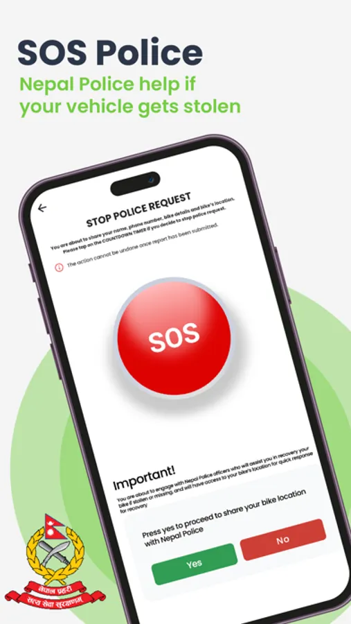 If you are certain your vehicle is missing or stolen, you can tap on SOS POLICE on your Locomo app to send a geo-coded information to Nepal Police whose officers on the ground will intercept the vehicle with priority and urgency.