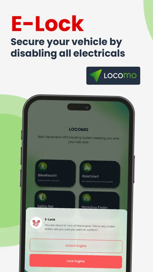 E-LOCK: Disable all electricals in your bike to prevent theft and misuse.