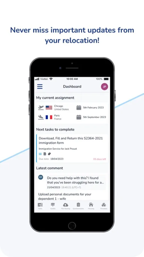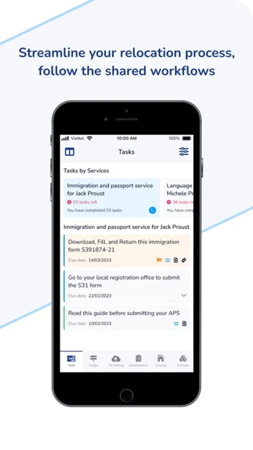 We know relocation can be overwhelming, which is why we've included features like file sharing, task management, and questionnaires that help make your transition as smooth as possible.
