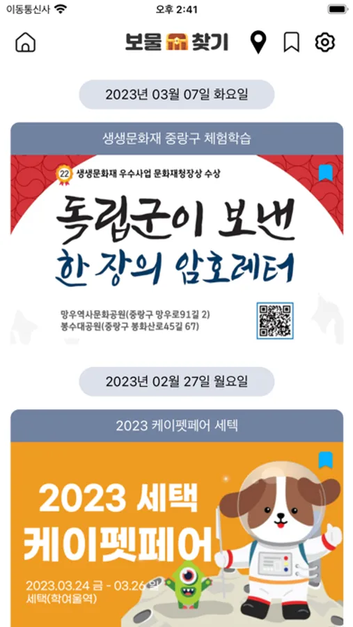 보물찾기는 축제나 전시, 공연 등 다양한 행사 정보를 무료로 제공합니다.