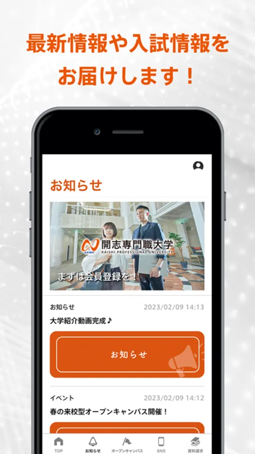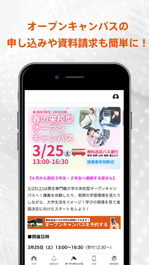 ・オープンキャンパスの申し込みや資料請求も簡単に!