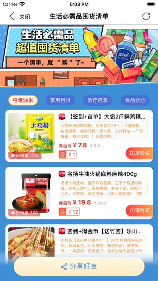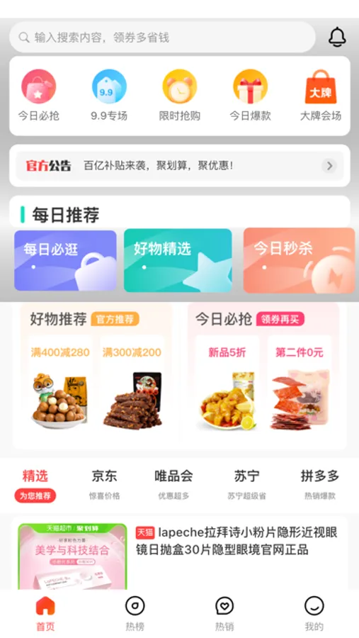 精选了天猫/考拉/京东/淘宝/严选的优质商品,全场商品尊享专属购物折扣。