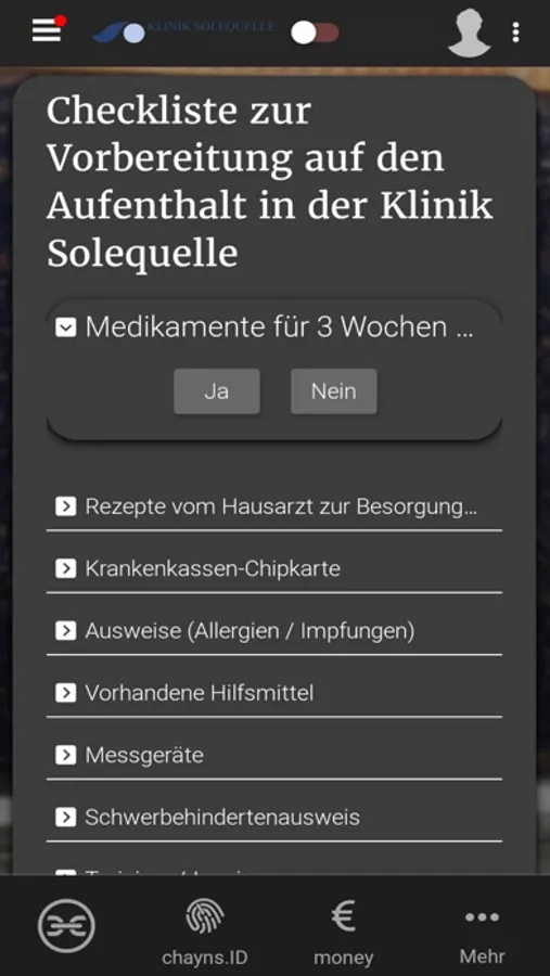 Mit unseren detaillierten Checklisten werden Sie bestens auf Ihren Aufenthalt in der Klinik Solequelle vorbereitet. Die Checkliste ist umfangreich und übersichtlich gestaltet.