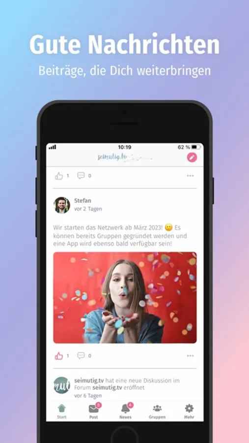 Das seimutig.tv NETZWERK bietet Dir einen besonderen Ort, an dem Du gemeinsam mit anderen neue Lebenswege finden kannst.