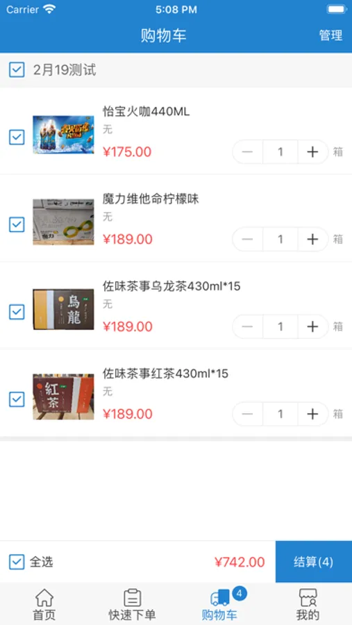 【商品下单】门店根据需求,将需要的商品选购到购物车,便于采购