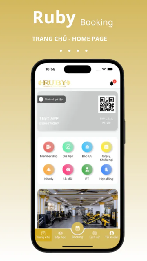 Ruby Fitness Booking là ứng dụng đặt lịch trực tuyến dành cho lĩnh vực gym. Hội viên sau khi ký và đăng nhập tài khoản trên ứng dụng. Hội viên sẽ Chọn địa điểm, thời gian giờ tập trong tuần và huấn luyện viên, các HLV sẽ đến tập luyện cùng bạn, mọi lúc, mọi nơi!