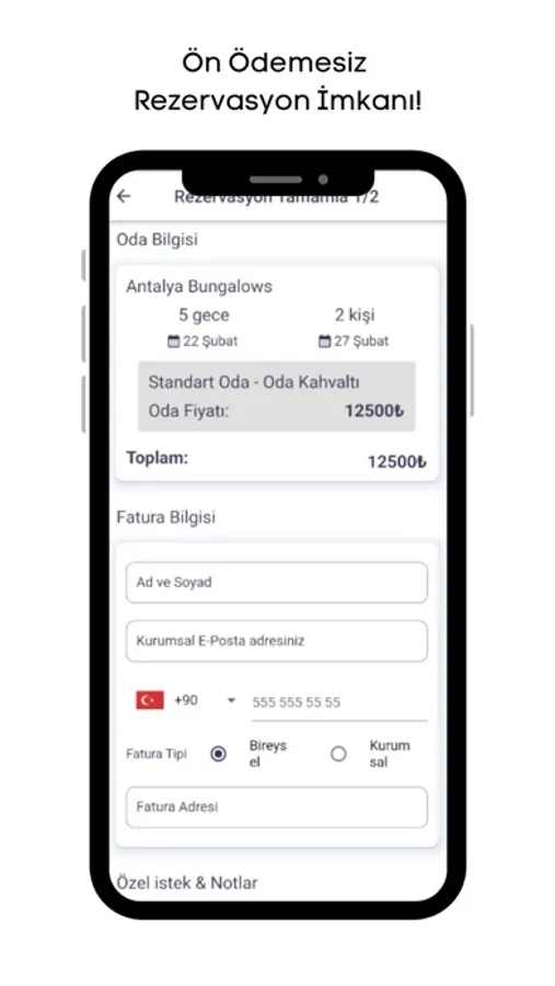 Ön Ödemesiz Rezervasyon İmkanı