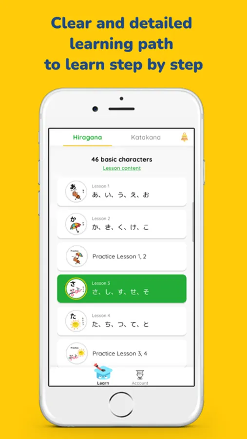 MochiKana Learn Hiragana offers a clear and detailed learning path to help you learn Japanese step by step, starting from the basics Japanese alphabet. In each unit, you will go through: