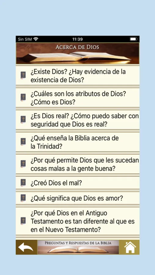 Resuelva sus dudas acerca de la Biblia y el Cristianismo con Preguntas y Respuestas de la Biblia. Si alguna vez se has preguntado algo acerca de la vida cristiana, el espíritu santo, Dios, la Santísima Trinidad, Jesucristo, la oración, el pecado, la humildad, la Biblia o cualquier otro aspecto cristiano, esta utilidad le ayudará a resolverlas.