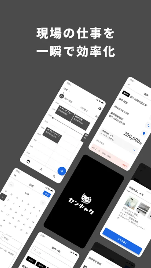 お客様からのお問い合わせからお見積り、現場での作業とお支払いまでを見やすく管理することができます。
