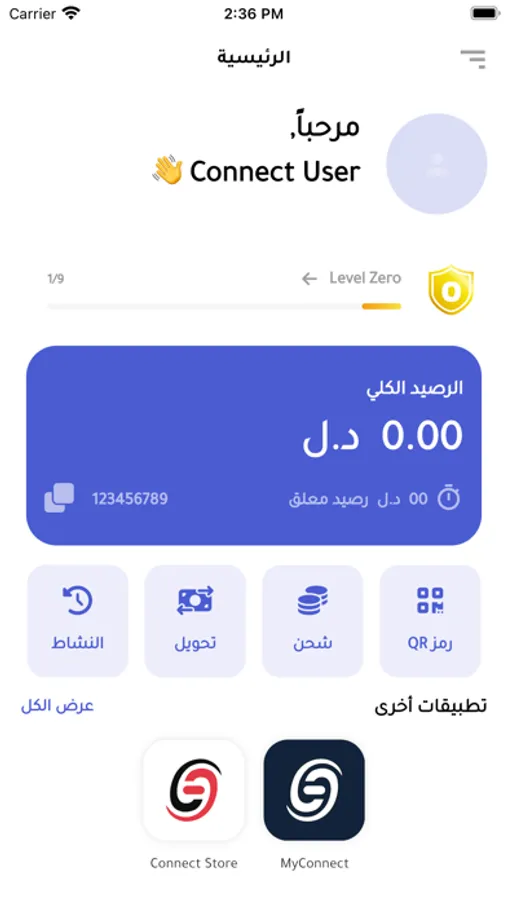 كما أنك ستتمكن بسهولة من ارسال واستقبال الاموال بين الحسابات داخل محفظة كونكت.