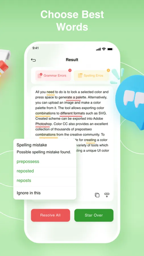 Our grammar checker app uses AI technology to find grammatical errors in your write-ups. It highlights the grammar mistakes in red color and provides the right grammar suggestion to fix them.