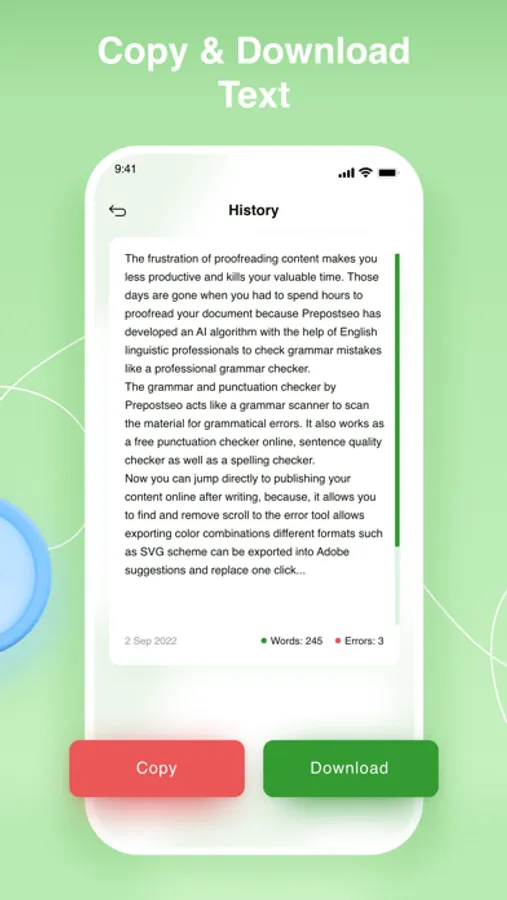 • After correcting the grammar errors, you can use its “download” feature to save the result text into your device’s local storage.