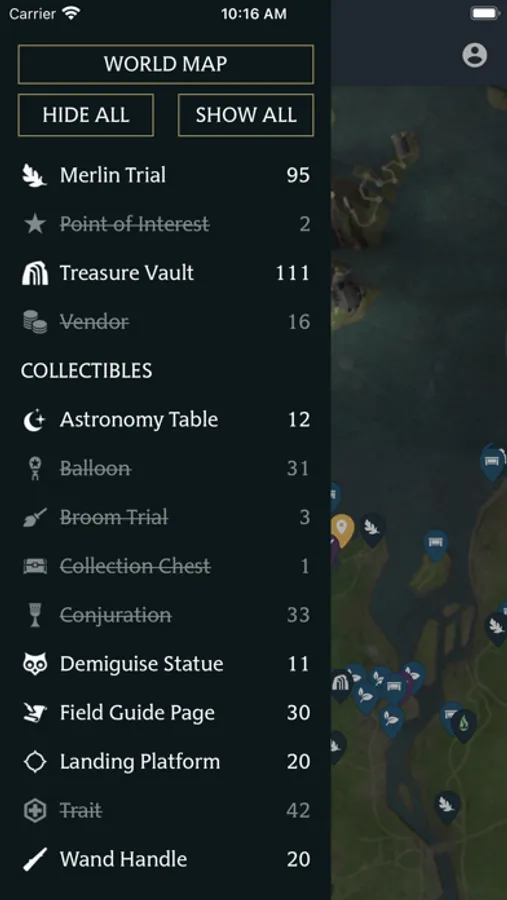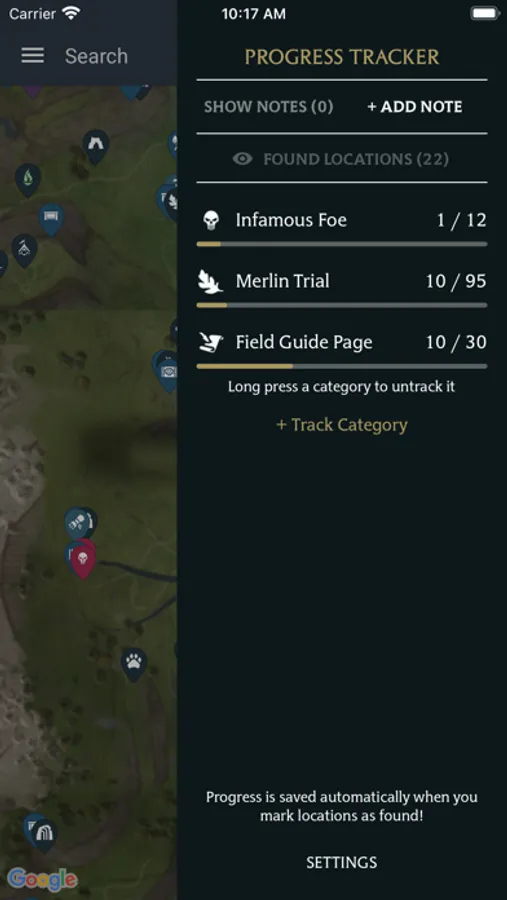 • Progress Tracker - mark locations as found and track the progress of your collectibles.