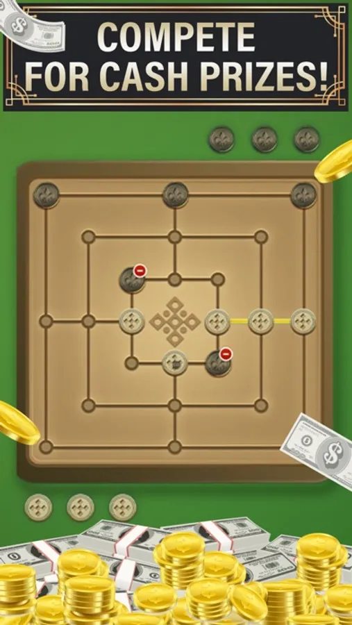 Hi Champ! Are you ready to defeat your opponent’s by playing with your friends and family using real cash. Mills is a strategic board game in which you build a row, you can remove one of the opponent pieces. Challenge your friends and try to beat one of your well-trained virtual players. Players compete to stay on the game board by swapping black and white pieces on the board to make a match and challenge each other using real cash.