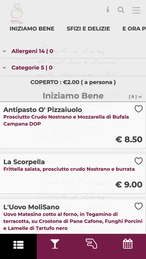 Applicazione per la gestione del menu digitale (allergeni e categorie). Gestione ordini in asporto e prenotazione tavoli.
