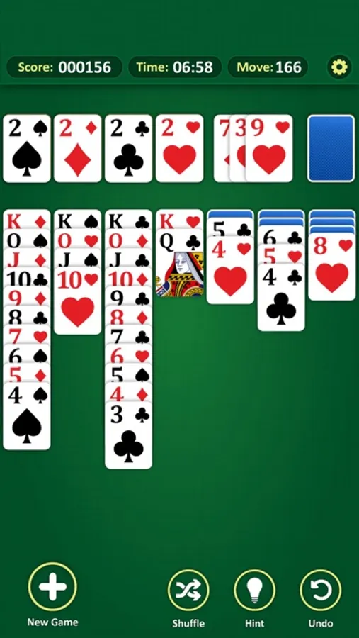 Start to Solitaire with the Ace and end with the King. Create four piles of cards in ascending order. You should always line up the red and black cards in a row. Think well, be faster, right move and earn more points with every game and beat your high score! Hint and undo helps you when you get stuck.