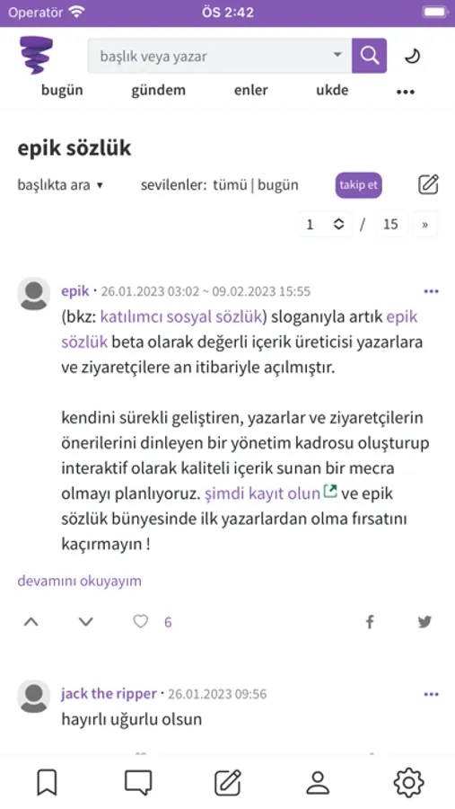 epik sözlük uygulamasını indirerek günün en çok konuşulan başlıkları, dünün en çok beğenilen entryleri ve geçen haftanın en çok konuşulanları hakkında hızlı bir şekilde haberdar olun. sosyal ağ tadında interaktif sözlük deneyimi yaşamak ve binlerce kişiye yazdıklarınızı ulaştırmak için bizimle kalın.
