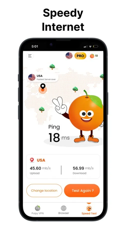 5. Speed Test: Pulpy VPN allows you to conduct speed tests to check if the speed does not interfere with your smooth experience. Slow speed can negatively impact this experience. Check the speed of the app so that a slow connection does not kill your browsing experience.