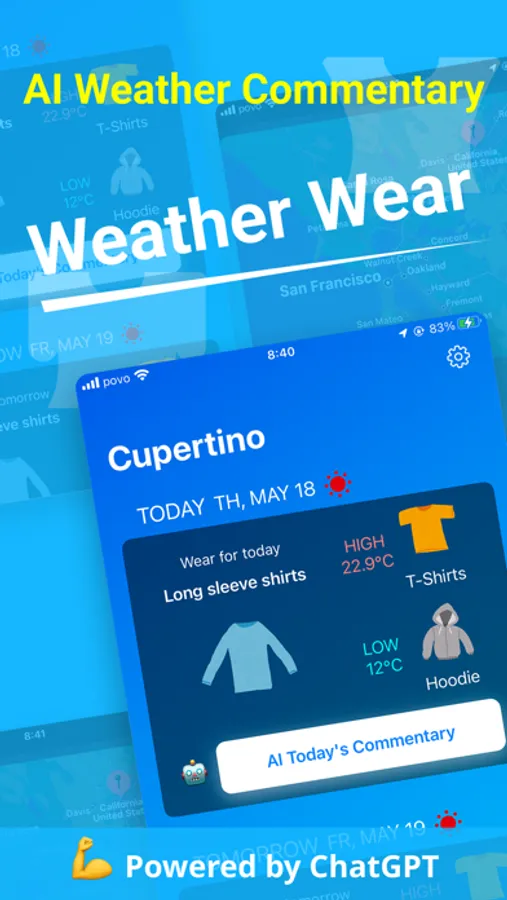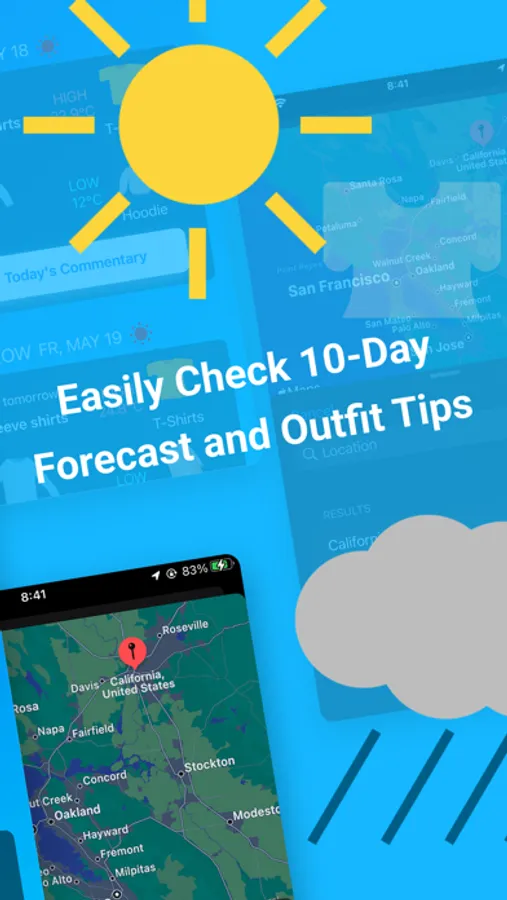 Introducing Weather Wear - your personal weather stylist. Get outfit suggestions tailored to the current weather conditions and your style preferences. With 10-day weather forecasts, you'll always be prepared for any weather. Stay comfortable and fashionable, rain or shine, with Weather Wear.