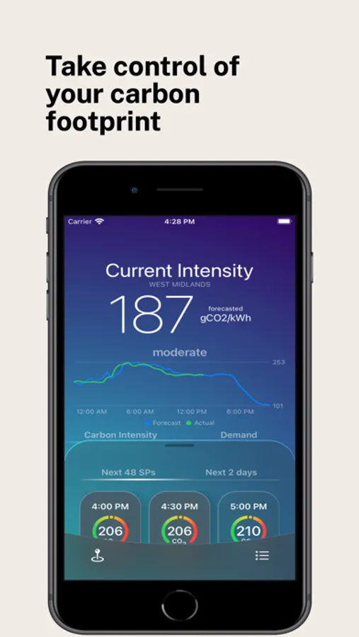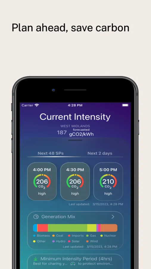 Customizable notifications: Set notifications (coming soon) to alert you when the carbon intensity is low, so you can plan your energy usage accordingly.