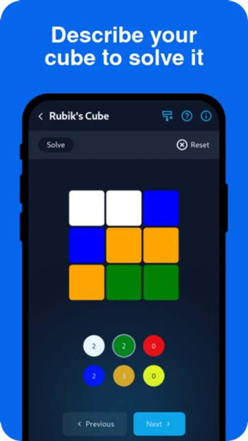 - Rubik's Cube : solves the classic 3x3 cube with an average of 27 moves.